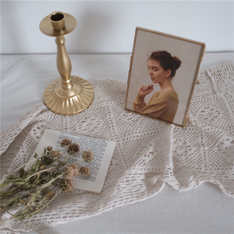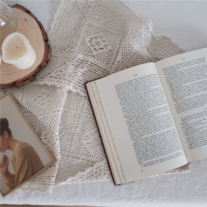 Tablecloth placemat cotton crochet lace hollow simple pastoral solid color tablecloth shooting background cloth ins decoration