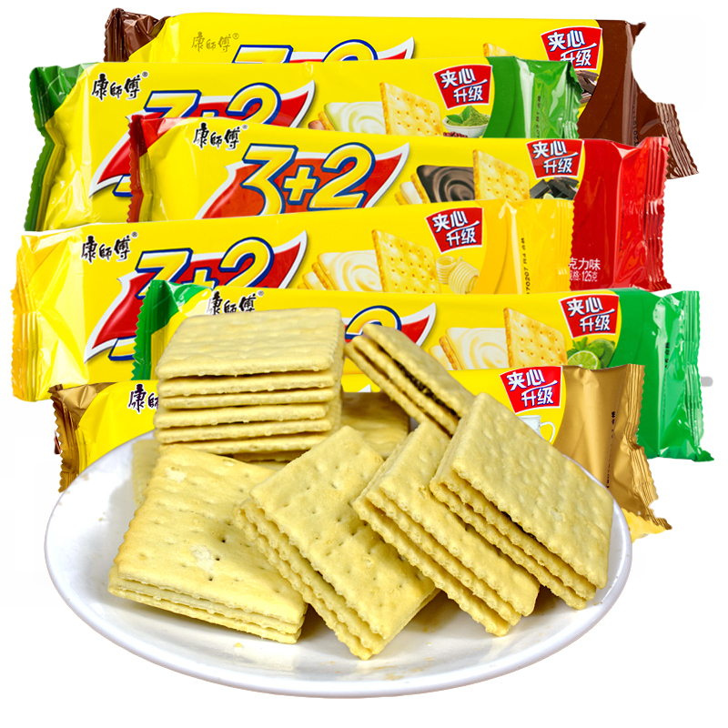 Master Kong 3 2 soda sandwich biscuits 125g*3 bags of multi-flavored bulk snacks snack combination mixed pack