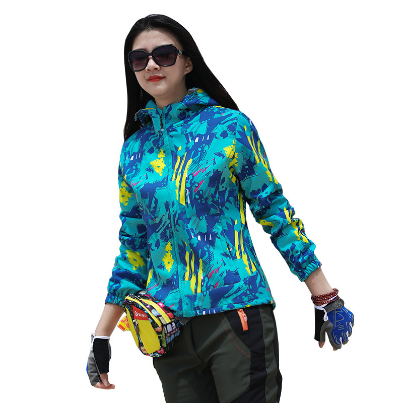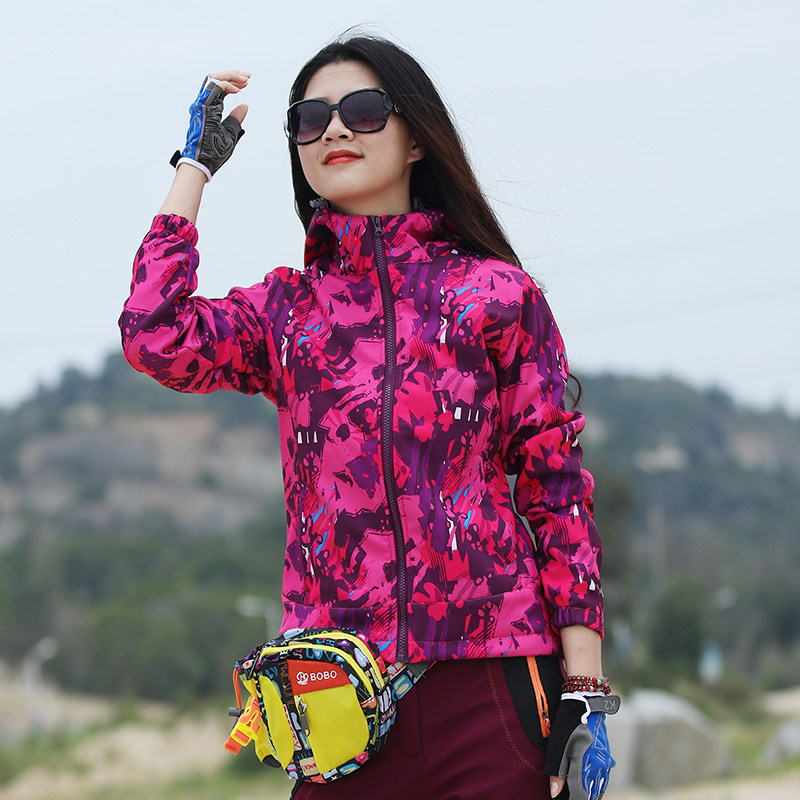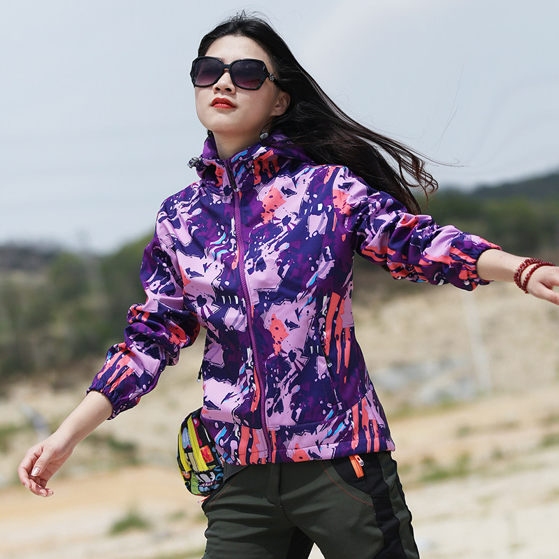 Autumn-winter waterproof and breathable thermal camouflated monolayer submachine clothing outdoor sports Mountaineering wear thin snatchcoat softshell clothes women