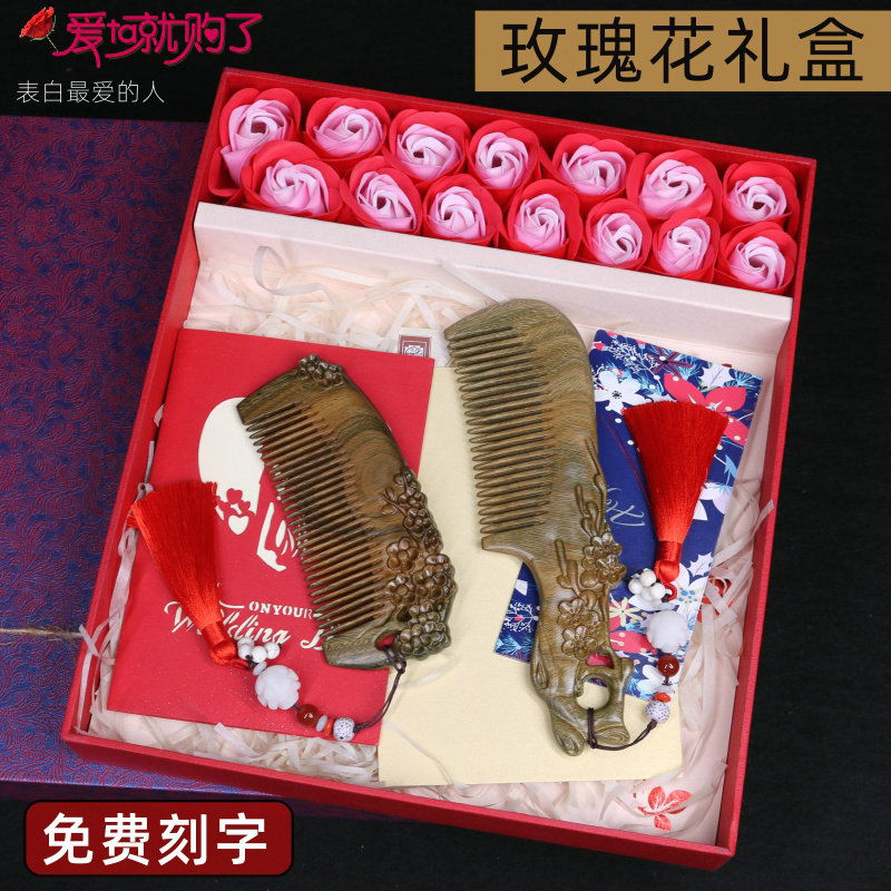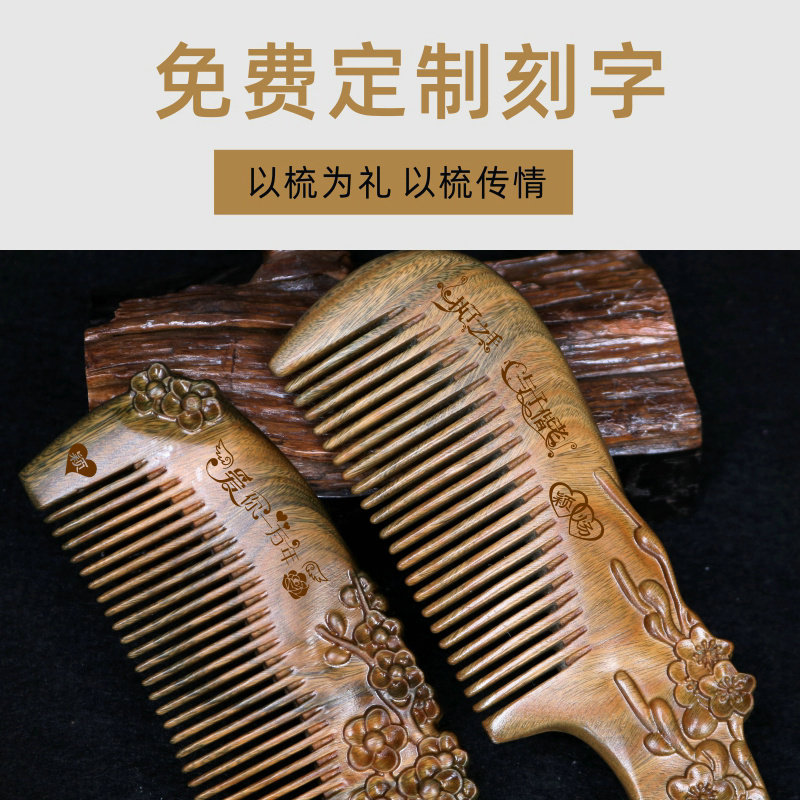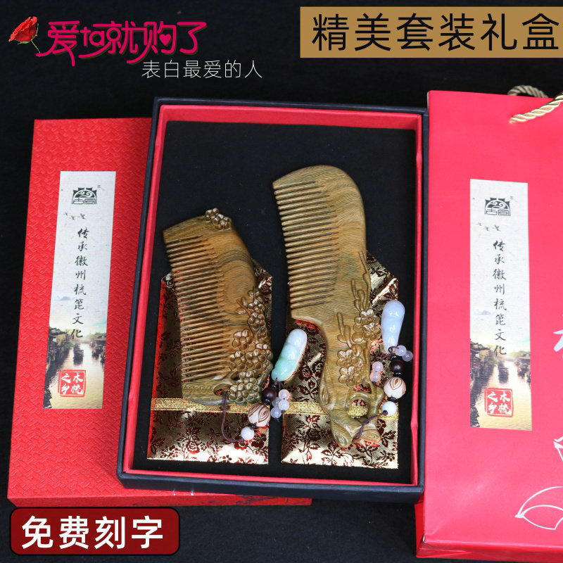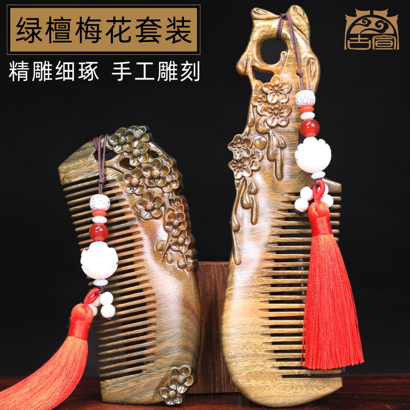 Upscale gift box ancient Xuan Plum engraving suit wood comb (red streaming sume) High-end Gift Box Ancient Catharous Plum Blossom Plum Engraving Suit Wood Comb (Green Streaming Su) Rose Gift Box Ancient Catharous Plum Engraving Suit Wooden Comb