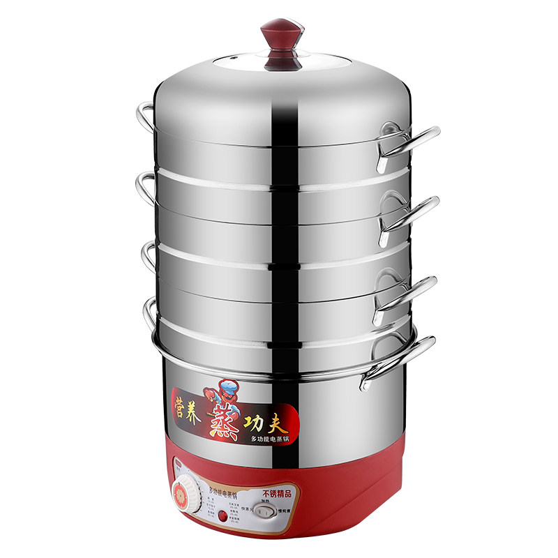Steamer electric steamer Home Three layers of steamed steamed buns with no-string taste steam electric boiler No-hole steam cage plug-in electric timing automatic power cut