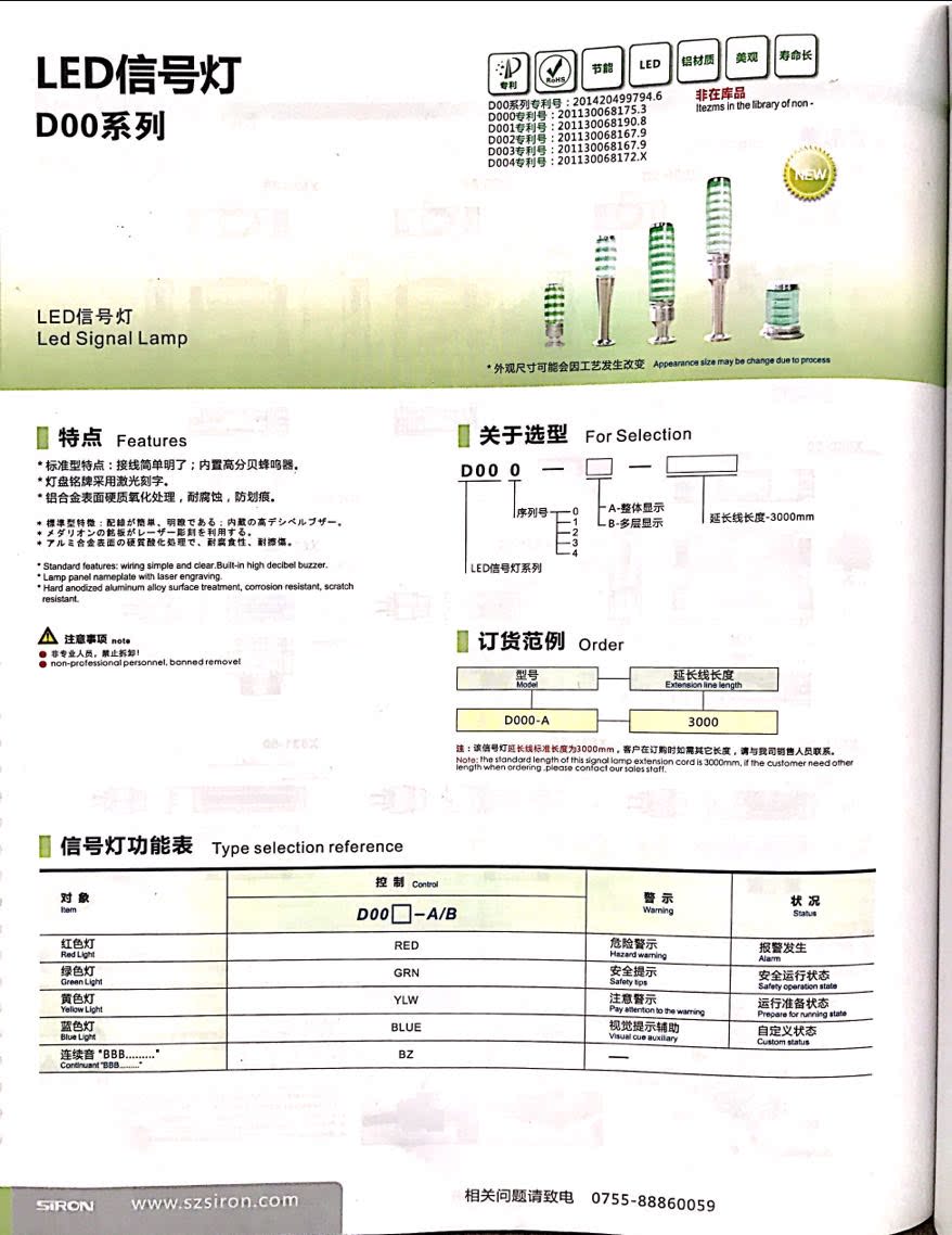 Original fit SIRON wins blue LED signal light aluminium tricolour with buzz DC24VD001-A-Taobao