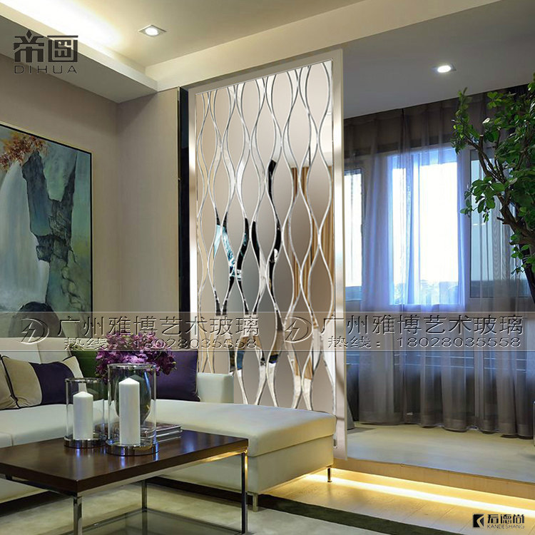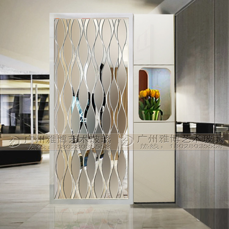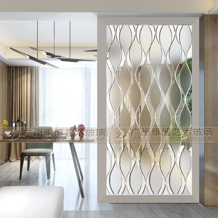 Modern Art Glass Screen Partition Wall Living-room Living-room Flower Minimalist Closed Cabinet Frosted Sculpted Light Transmission Clamp Silk Process Embossing