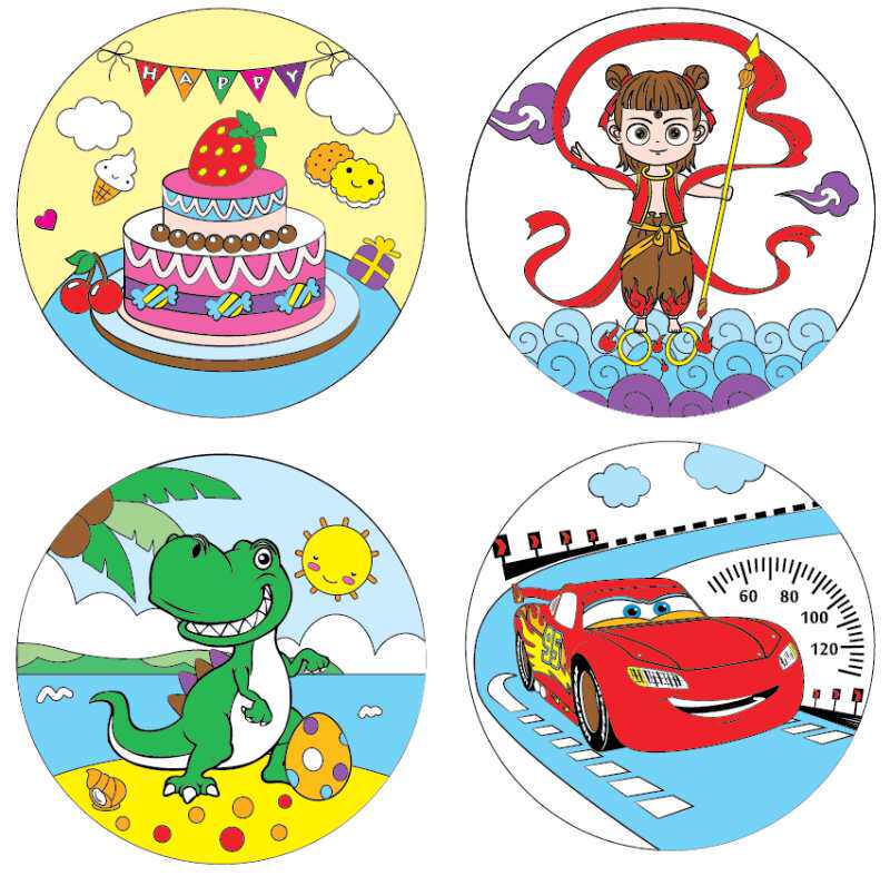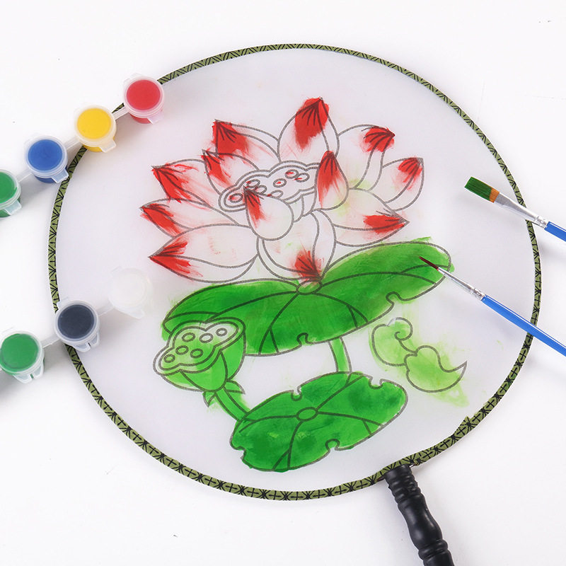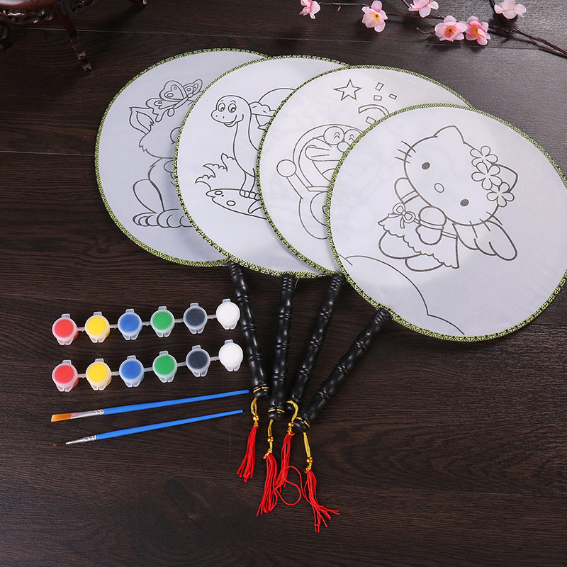 Children's graffiti Painted Fan Young Teaching Diy Painting Round Palace Fan Cartoon Pink Ensemble Fan Graffiti Painting