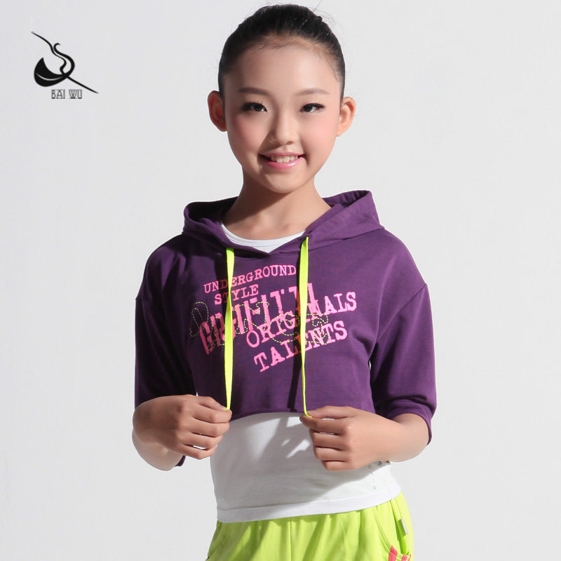 Kashiwa House Dance New Kids Jazz Dance Hood top Loose short sleeves hip-hop hooded girl pull over