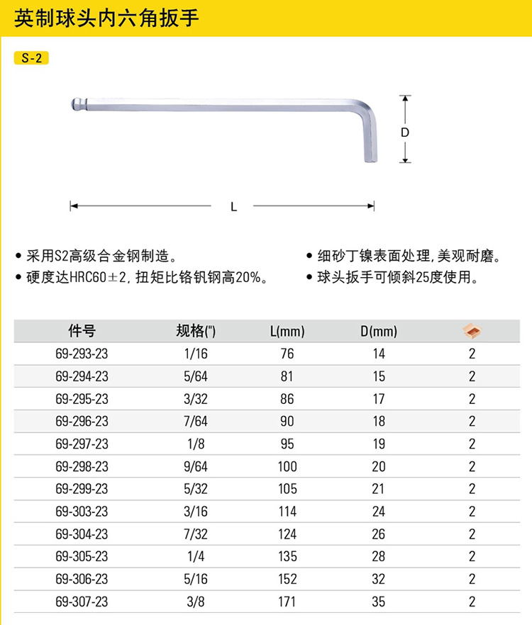 Stanley Stanley British ball hexagonal wrench 9 64 inner hexagonal 69-298-23