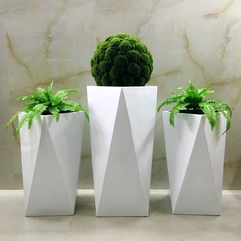 Glass fiber flower pots Large number Grand number minimalist Mall Hotel Interior Exterior Home Ground Rhombus Combined Vases