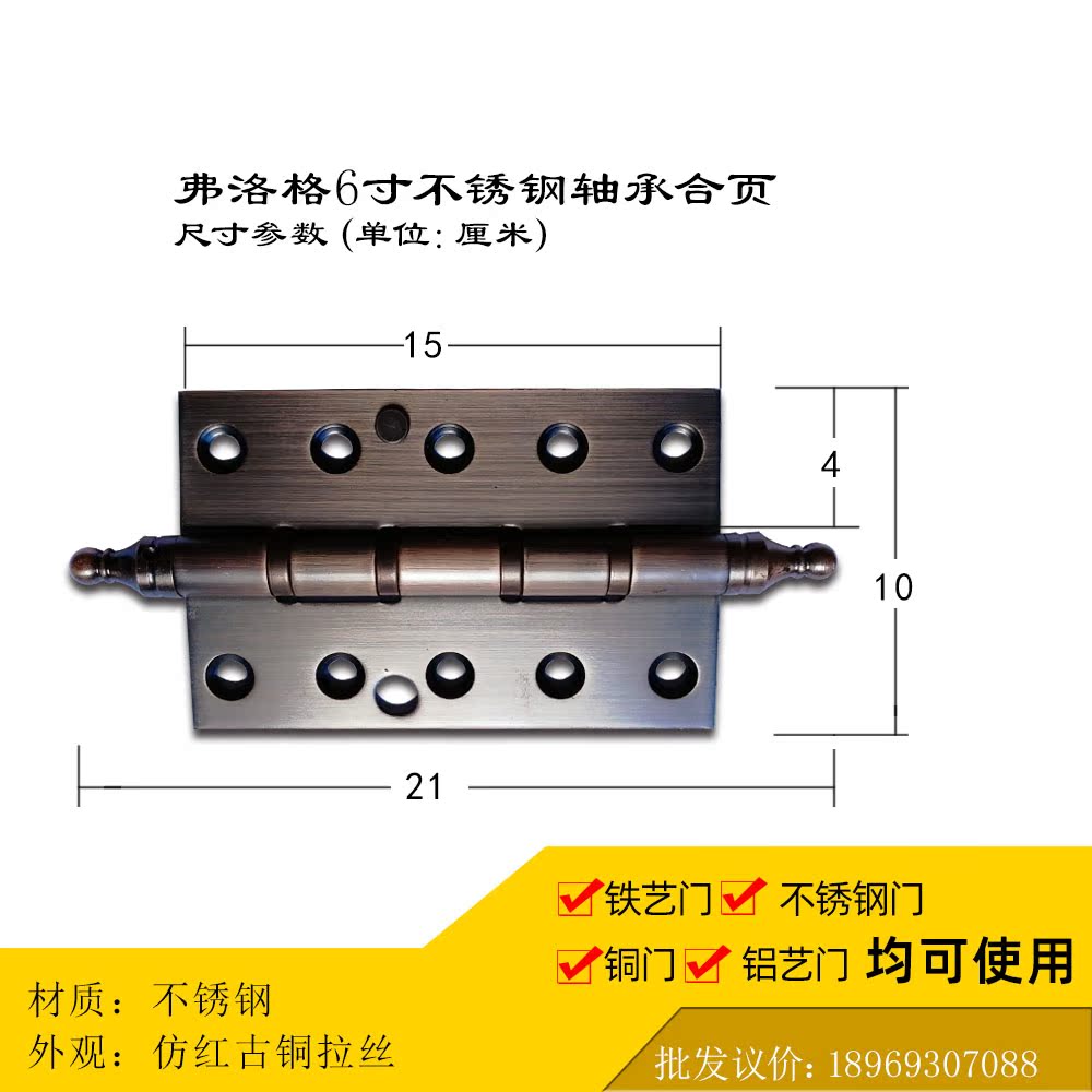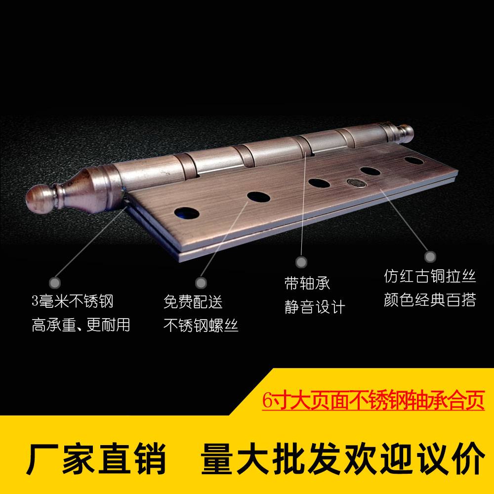 Copper Door Hinge 6 Inch Silent Bearing Hinge Thickened Stainless Steel Imitation Red Antique Bronze Villa Courtyard Gate Accessories