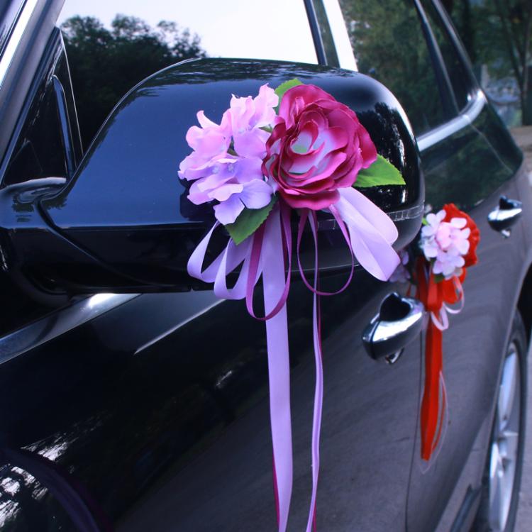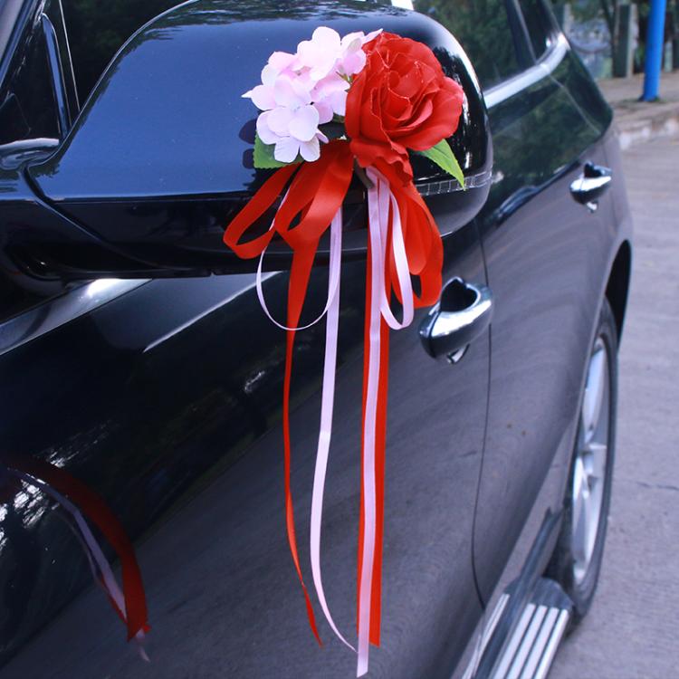 VIVI wedding flower car decoration wedding gift car dotted flower simulation car flower decoration dot decorated with flower knot wedding car headstock decoration flowers