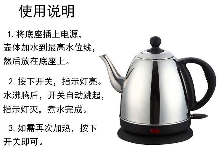 Wei Zhengda Stainless Steel Electric Kettle Quick Long Mouth Burn Kettle Home Cooking Water Teapot Automatic Power Cut Anti-Burning