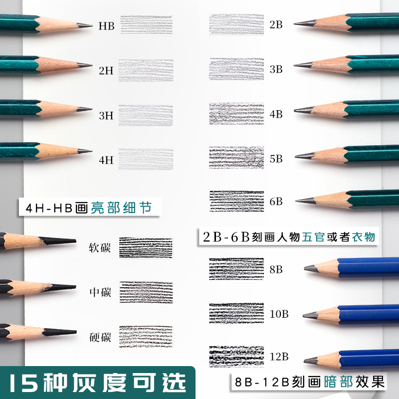China brand sketch pencil drawing student hand-drawn 2B4B charcoal pen art student special beginner painting professional set HB children non-toxic primary school students with tools 2H8B pen soft medium hard 6B