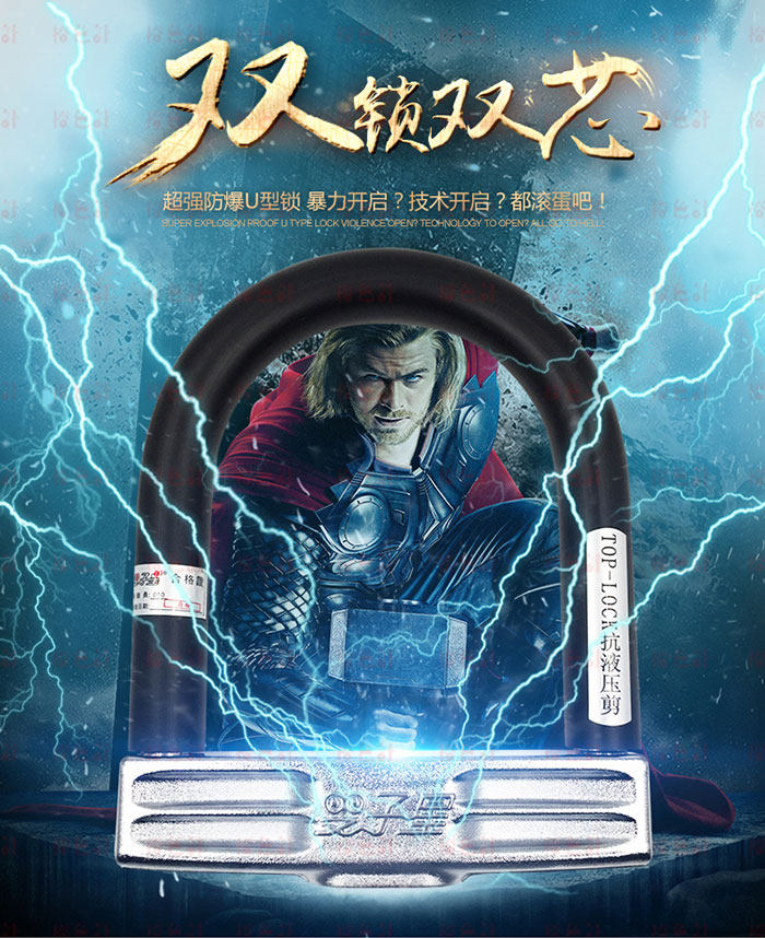Motorcycle anti-theft lock Electric car Bicycle disc brake electric car Taiwan Gemini double lock core U-lock electric car