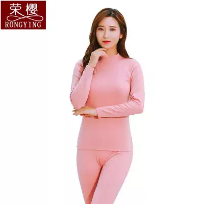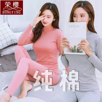 Autumn clothes sanitary pants set cotton semi-high collar summer thin women loose basic base set heating coat white