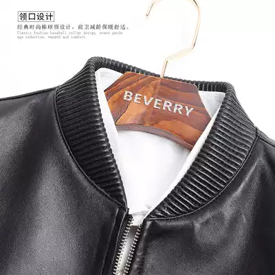 Bifili Leather Baseball Collar Leather Men's Slim Korean Handsome Young Pilot Leather Jackets Baseball Suit Haining