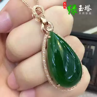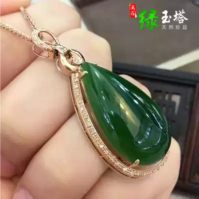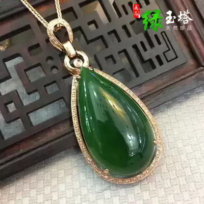Hetian Jasper water drop pendant 18K gold inlay Hetian jade spinach green jade pendant jade pendant jade pendant