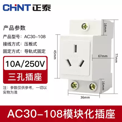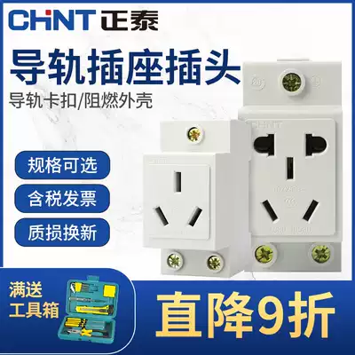 Chint socket modular guide rail type distribution box AC30 five-hole two-three plug 10 16A multi-function socket 220V