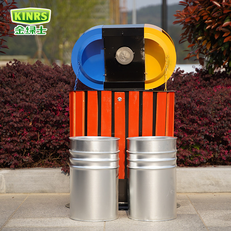 Outdoor trash can large sanitation classification peel box wooden stainless steel outdoor community scenic area park trash can