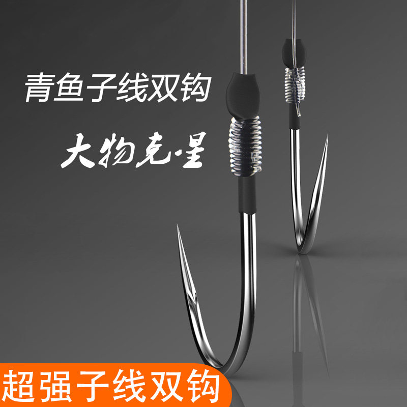 Titanium Alloy Crooked Mouth Giant Fishing Green Fish Sturgeon Big Things Sub-Wire Double Crochet Wire Group Pair Hook Fish Hook Good Finished Product Import