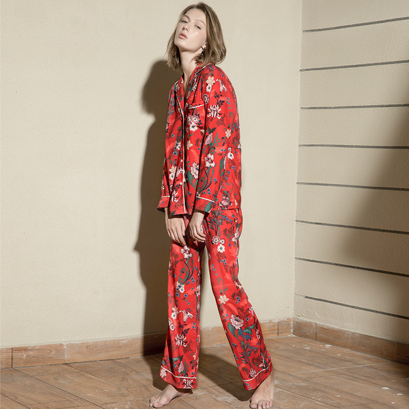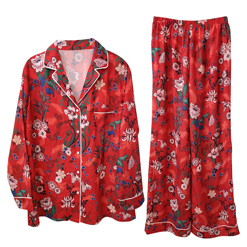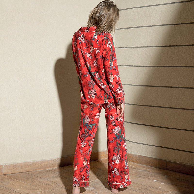 Johan Pyjamas Woman Spring Summer Season Great Red Wedding National Wind Printed Long Sleeve Cotton Thin home Suit Suit