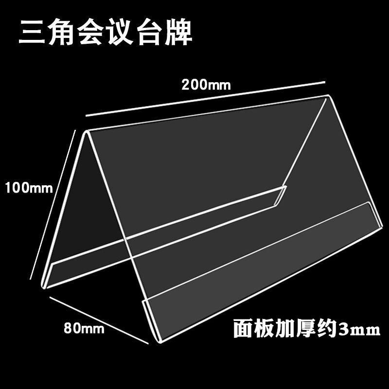 Thickened 3mm Acrylic Meeting Cards V-type Meeting Table Cards Table Cards Triangle Tabletop Conference Cards Seats Cards Double Sided Transparent Acrylic Seating Cards Table Sign 100 * 200 People Nameplate (10 clothes)