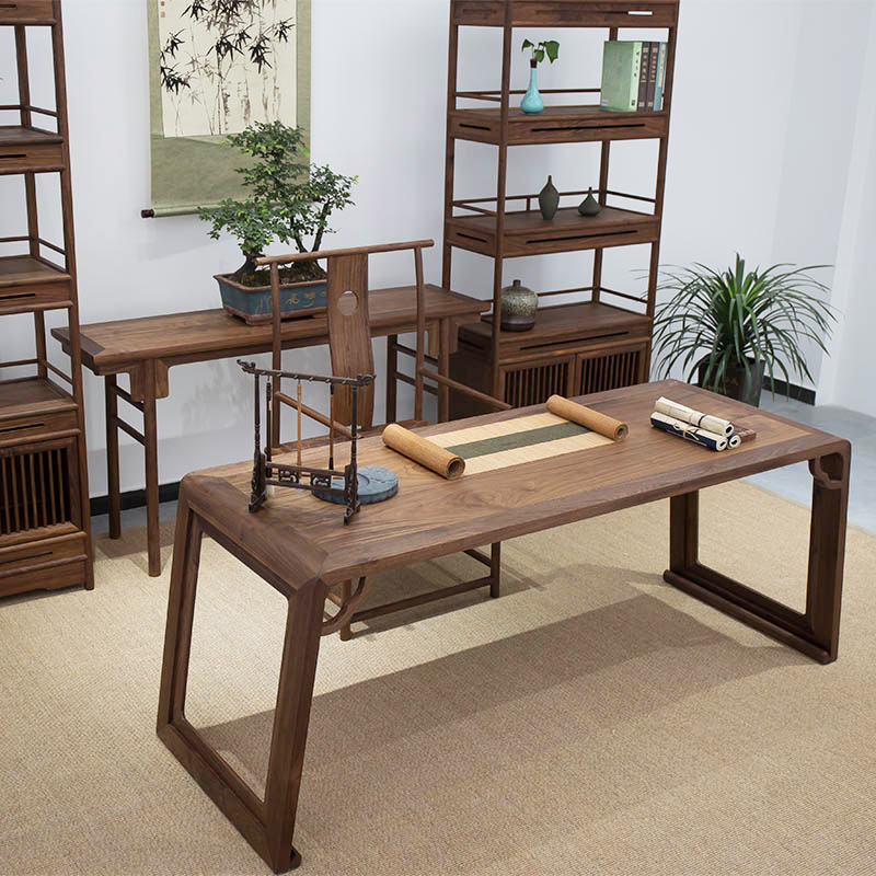 New Chinese-style guqin table and stool resonance piano table solid wood double guzheng table Zen calligraphy and painting Chinese learning table