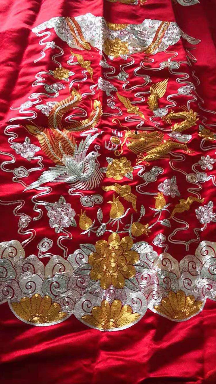 Panjin embroidery Wedding coat Bride wedding coat embroidery Wo processing Hand embroidery Panjin embroidery Su embroidery three-dimensional dragon and phoenix embroidery sample customization