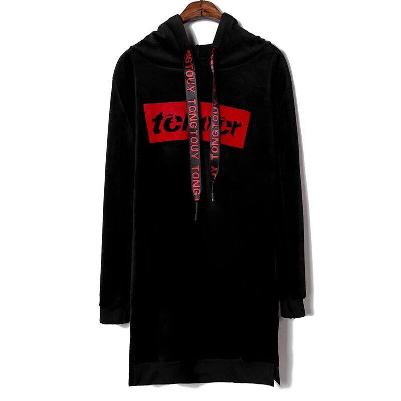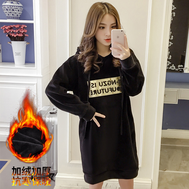 Pregnant women autumn and winter clothes Korean version medium and long version loose double-sided plus velvet thick pullover gold velvet warm hooded sweatshirt set