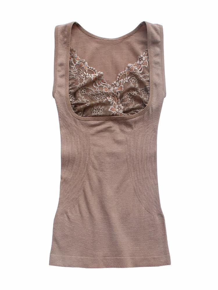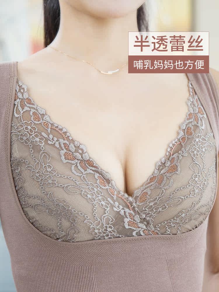 Thin body sculpting warm vest women's autumn and winter inner wear heating lace support chest body shape autumn clothing one-piece top