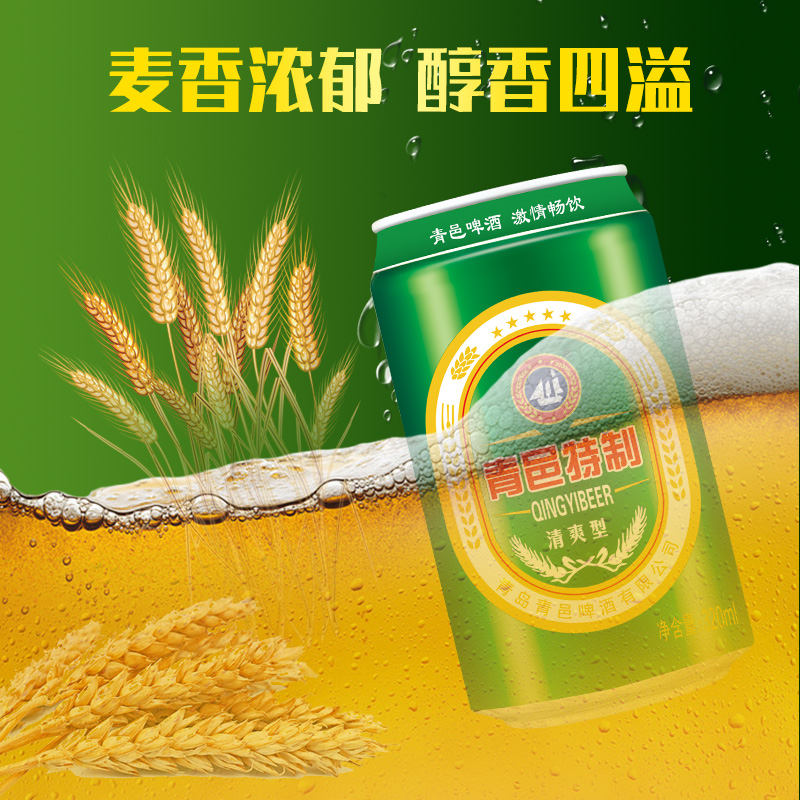 Shandong Qingdao Qingyuan special beer Qingyi beer 8 degrees refreshing type 320ml*24 cans full case promotion