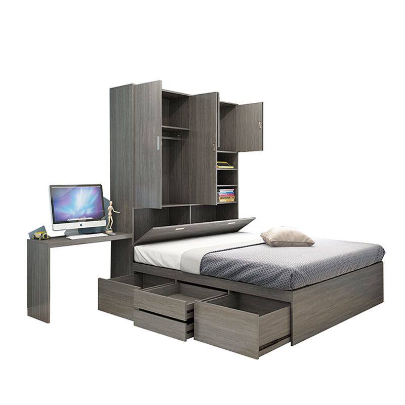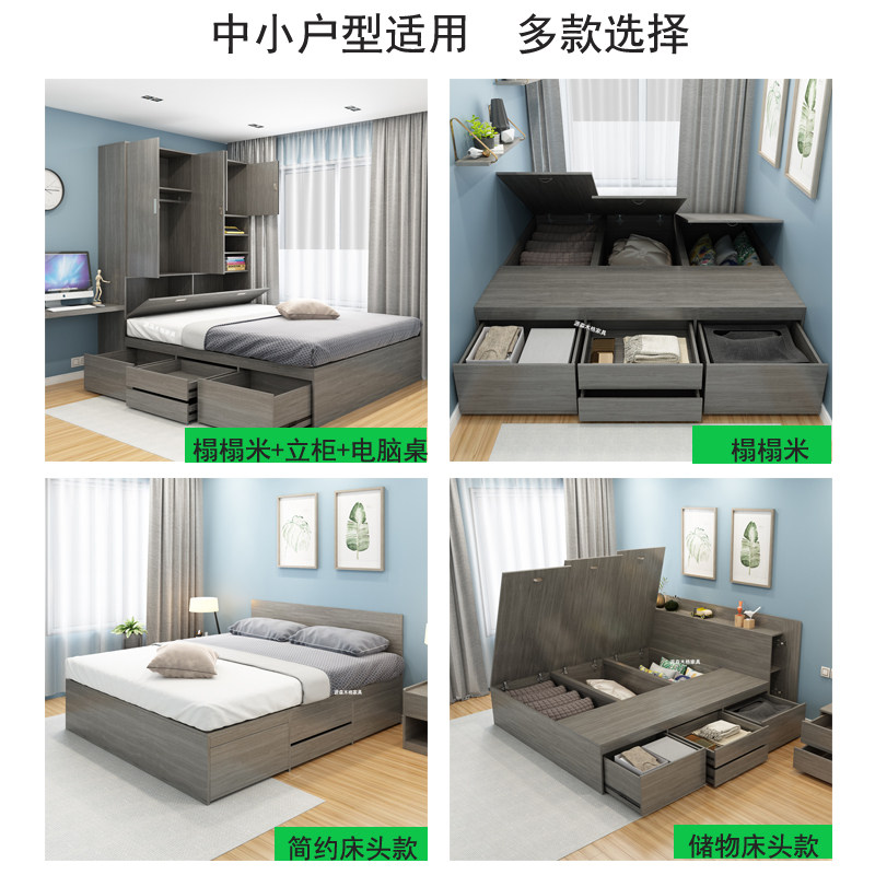 Modern simple tatami wardrobe integrated small apartment 1 8m multi-functional double high box storage drawer bed customization
