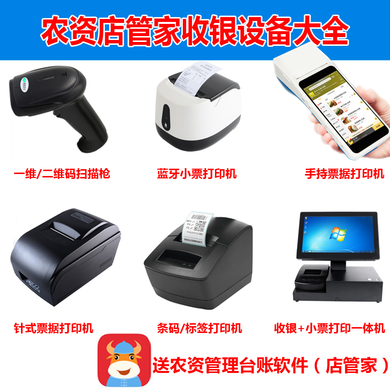 USB wired scanner wireless scanner Bluetooth bill printer Bluetooth label printer Bluetooth pin receipt machine field billing mobile printer touch screen cash register package one package two sets