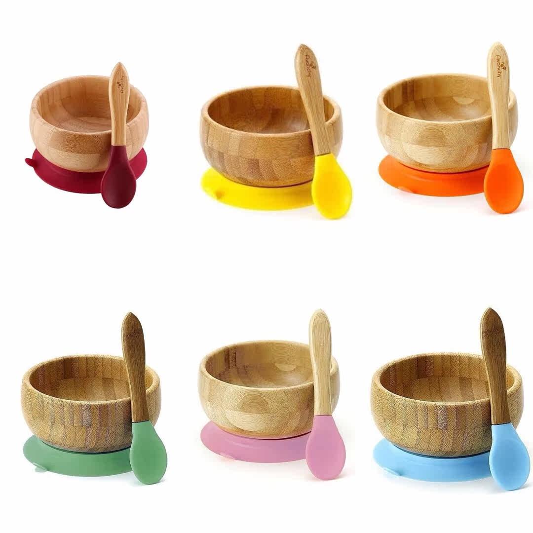 *Little Forest* Spot American Avanchy Infant Bowl Spoon Set Supplementary Food Bowl Suction Cup Bowl Silicone Anti-fall