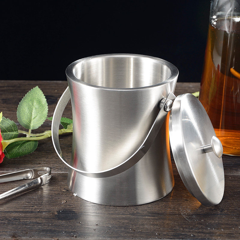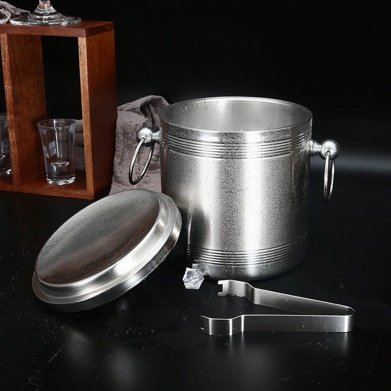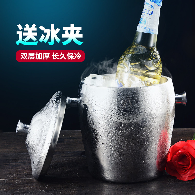 Bar ktv stainless steel large insulated ice bucket keeps cold hand-held red wine beer champagne ice bucket with ice clip commercial