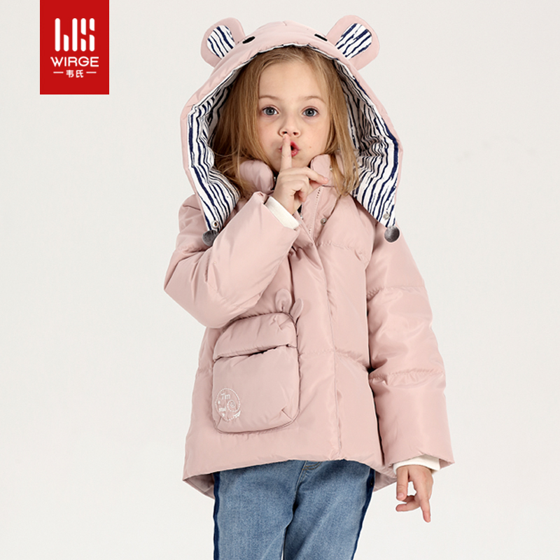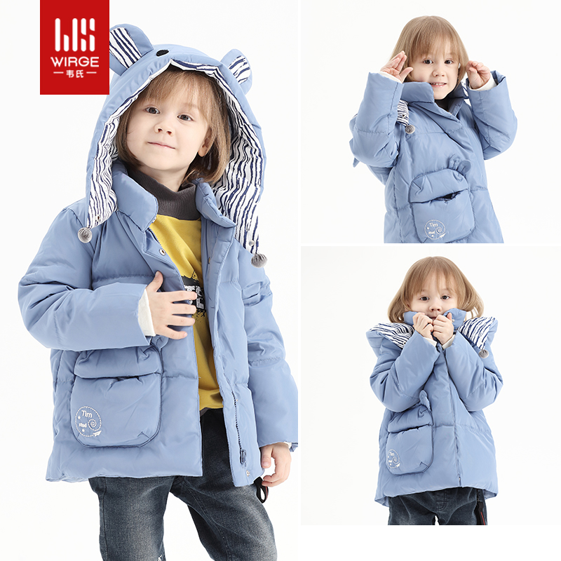 Webster children's clothing new children's down jacket boys and girls thick long cartoon baby hooded jacket winter