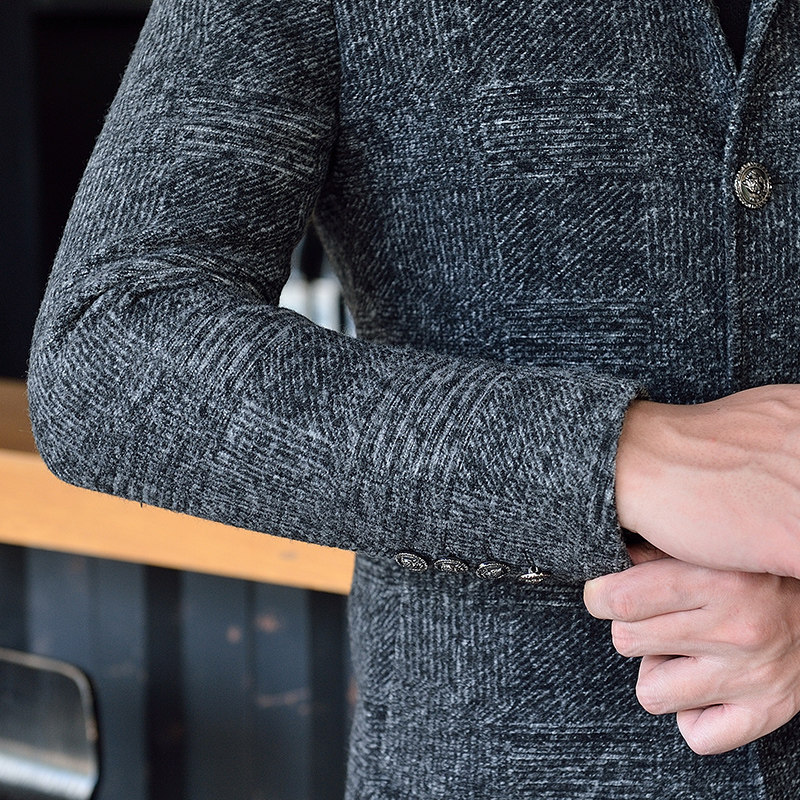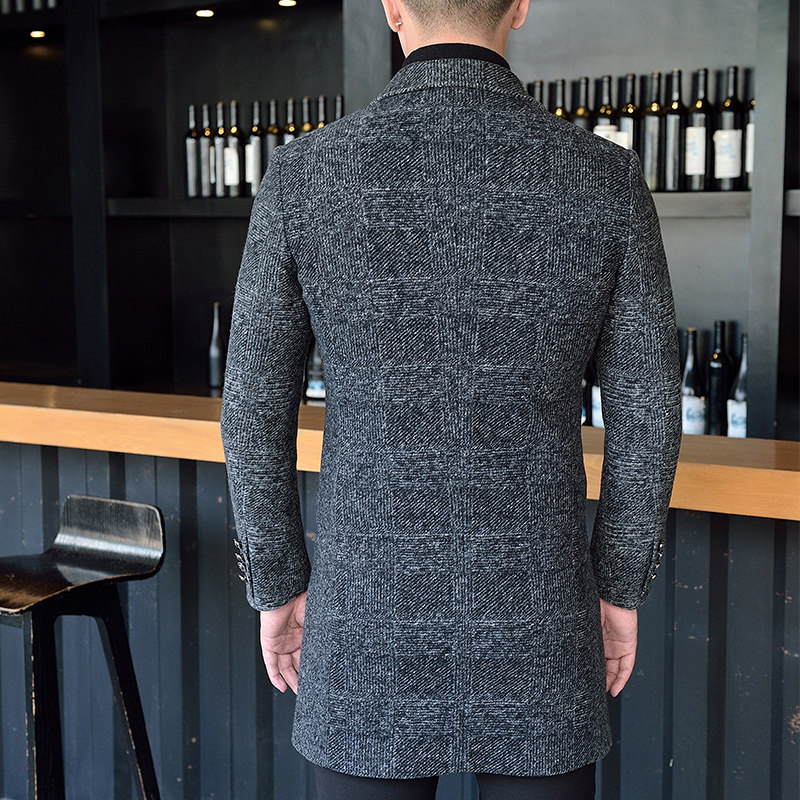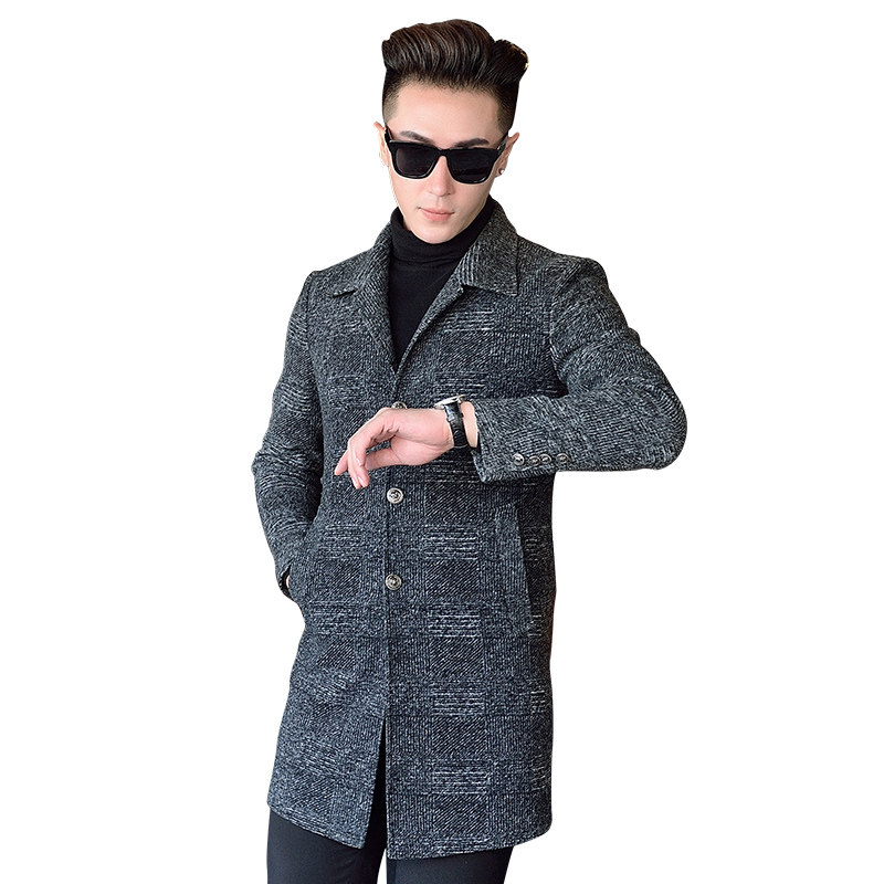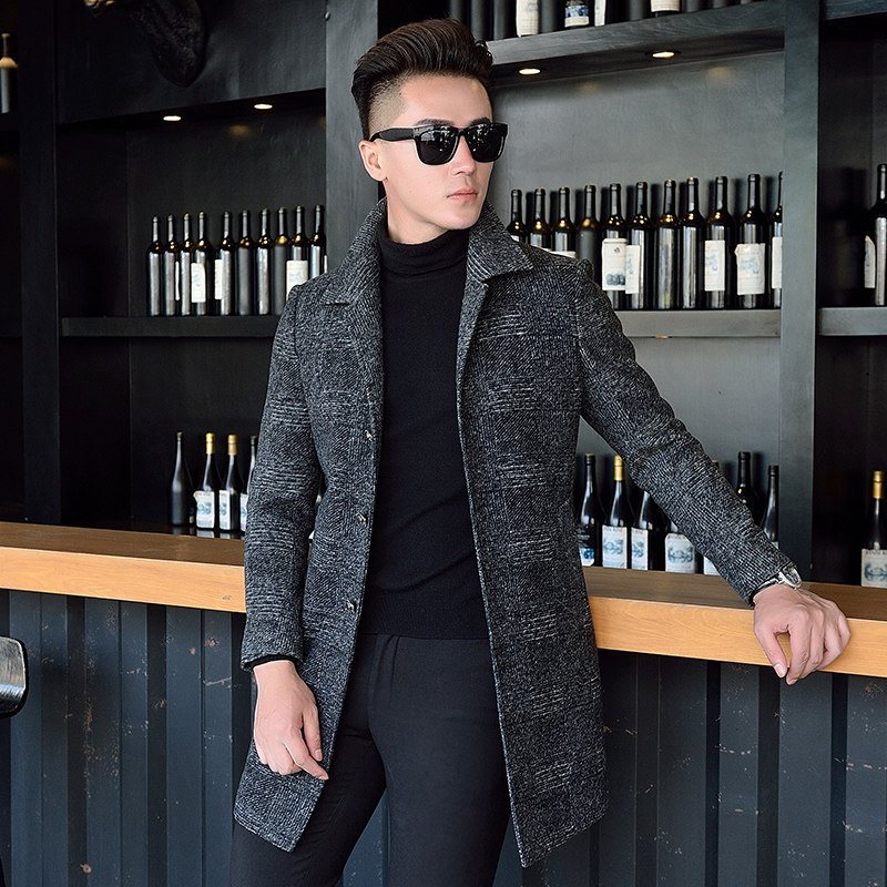 2021 new autumn and winter woolen jacket long men Korean slim trend youth wool nanny jacket plus Cotton