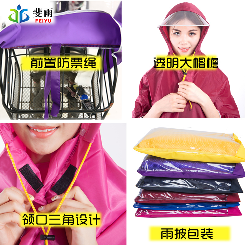 Fei Yu electric bicycle raincoat adult male and female motorcycle riding increased padded mask electric car poncho