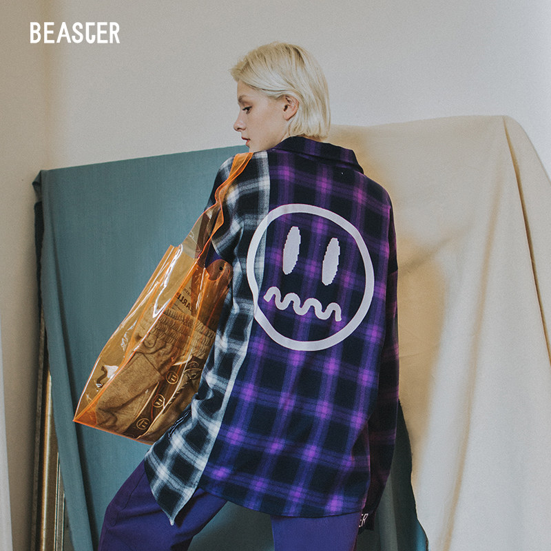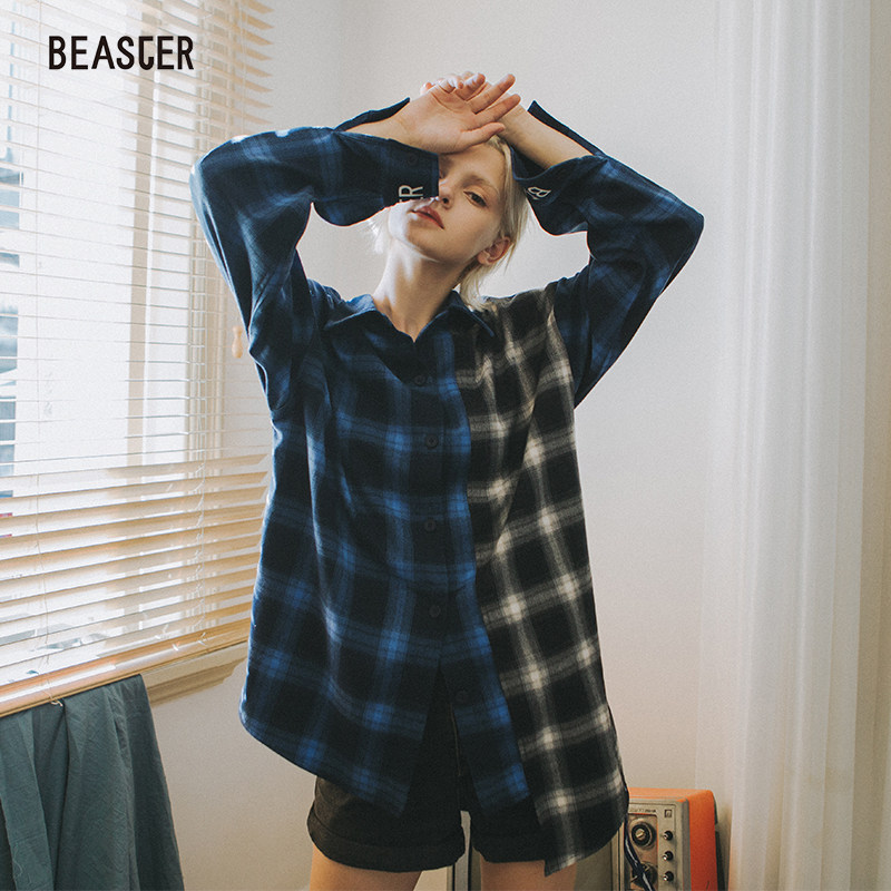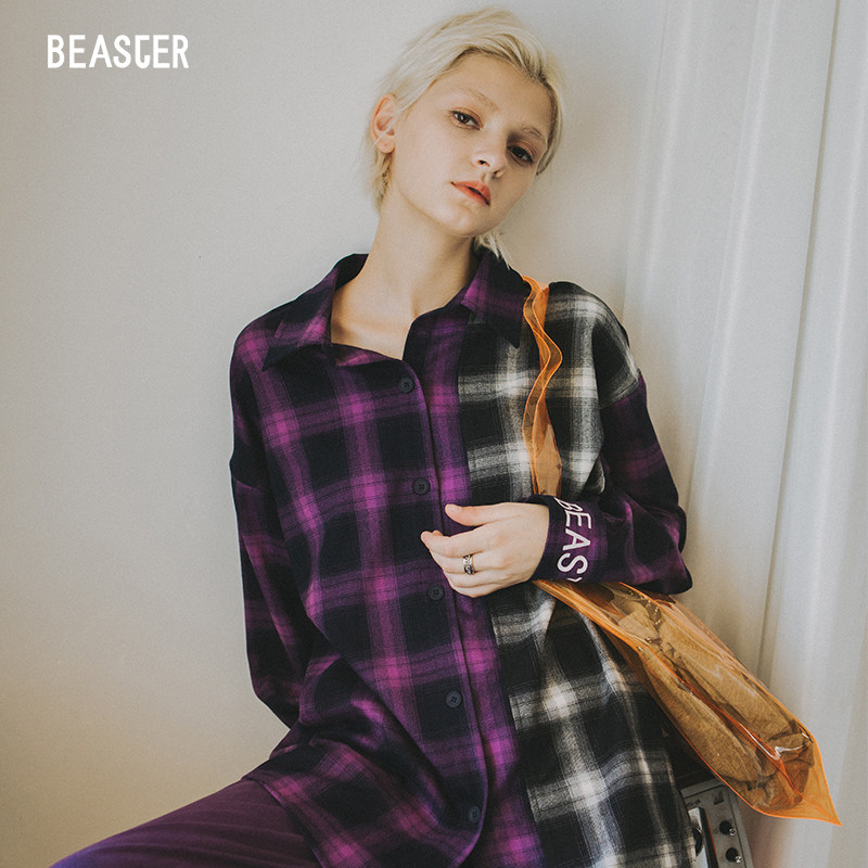 BEASTER Fall Early Fall Couples Fashion Brand Hip Hop Stitching Plaid Shirt Men's Jacket Shirt National Tide Trend