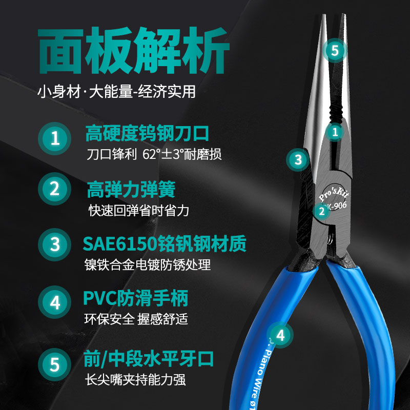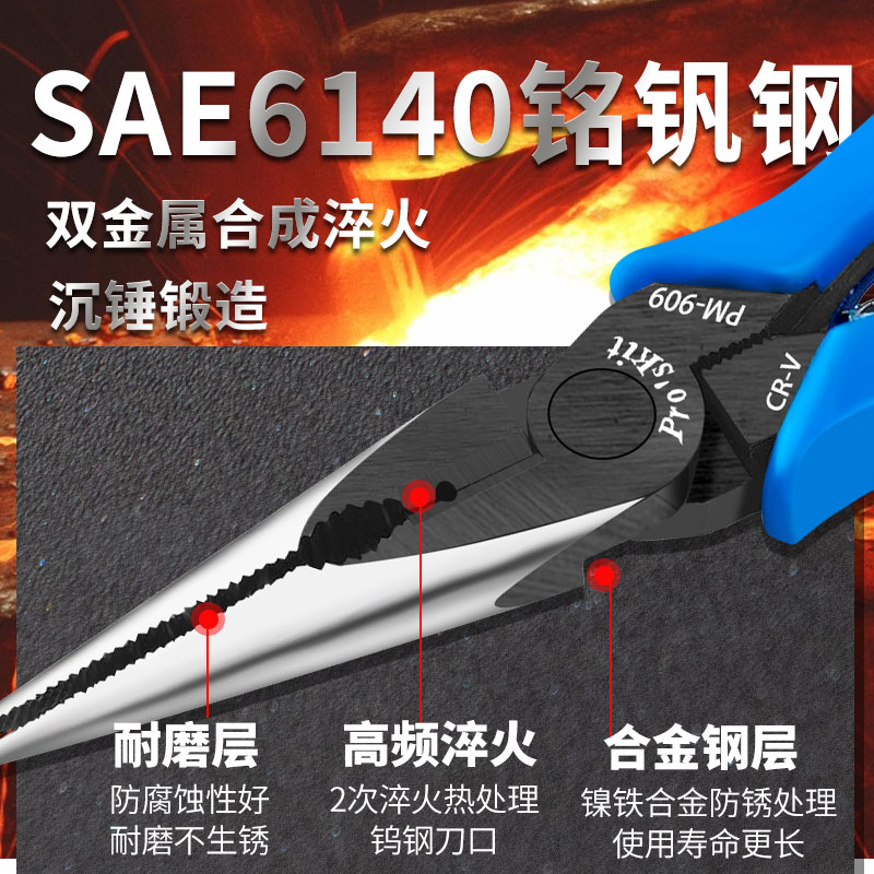Imported Taiwan Baoworkers PM-909 Ksteel 6-inch tip Mouth pliers Japanese-style sharp mouth pliers can cut steel wire tool