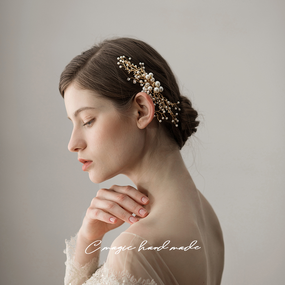 O384 Bridal headdress Fresh forest department beautiful beaded gold comb Wedding dress modeling accessories Hair accessories