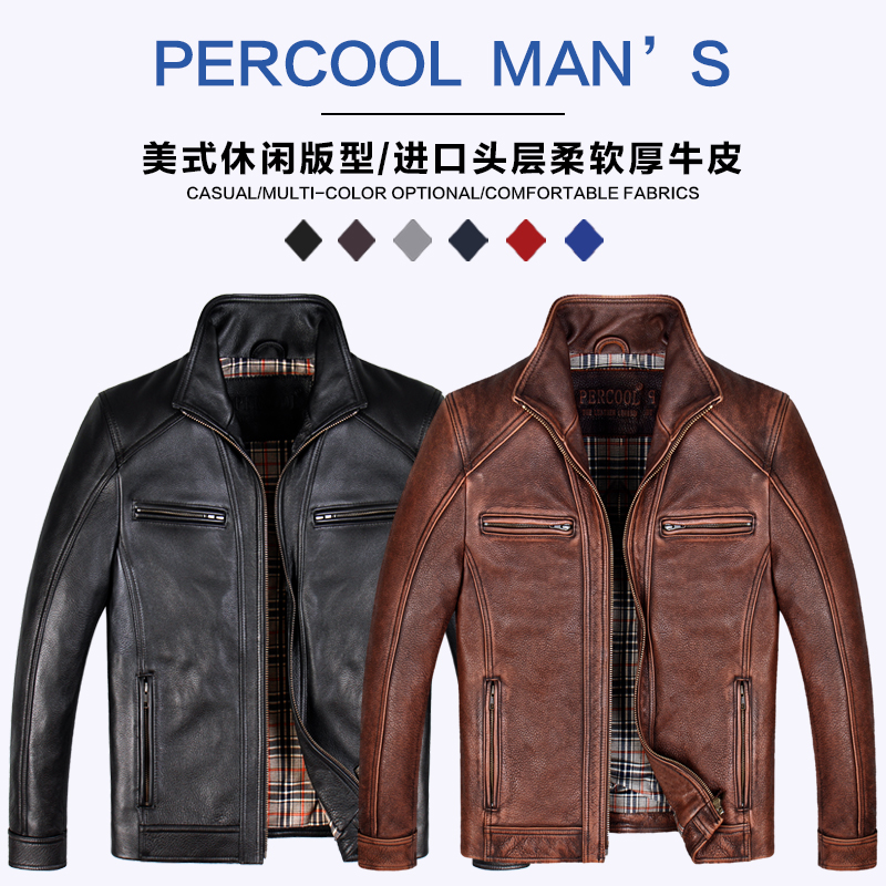 European and American leisure genuine leather leather clothes middle-aged men's style in verbal layer pure cow leather leather leather jacket autumn and winter big code leather jacket thickness
