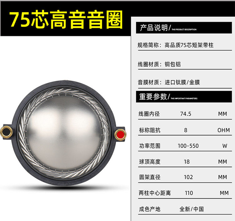Loudspeaker treble 170 magnetic 75 core horn horn high power 74 46mm flat wire imported 74 5 titanium film voice coil