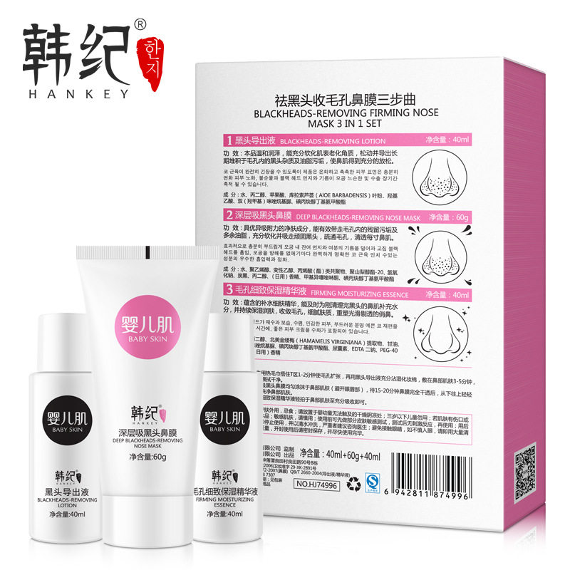 Three-piece suit to remove blackheads and shrink pores