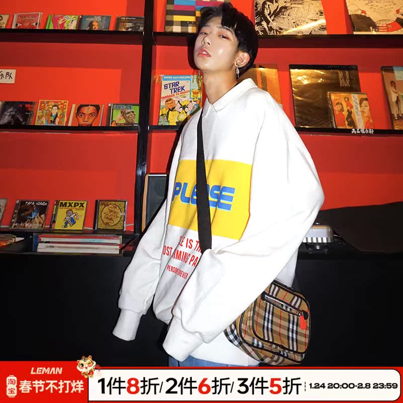 Leman Jin Jun Wei Yi Men's Korean 2021 Spring Crewneck Casual Loose Turtleneck Jacket for Men and Women