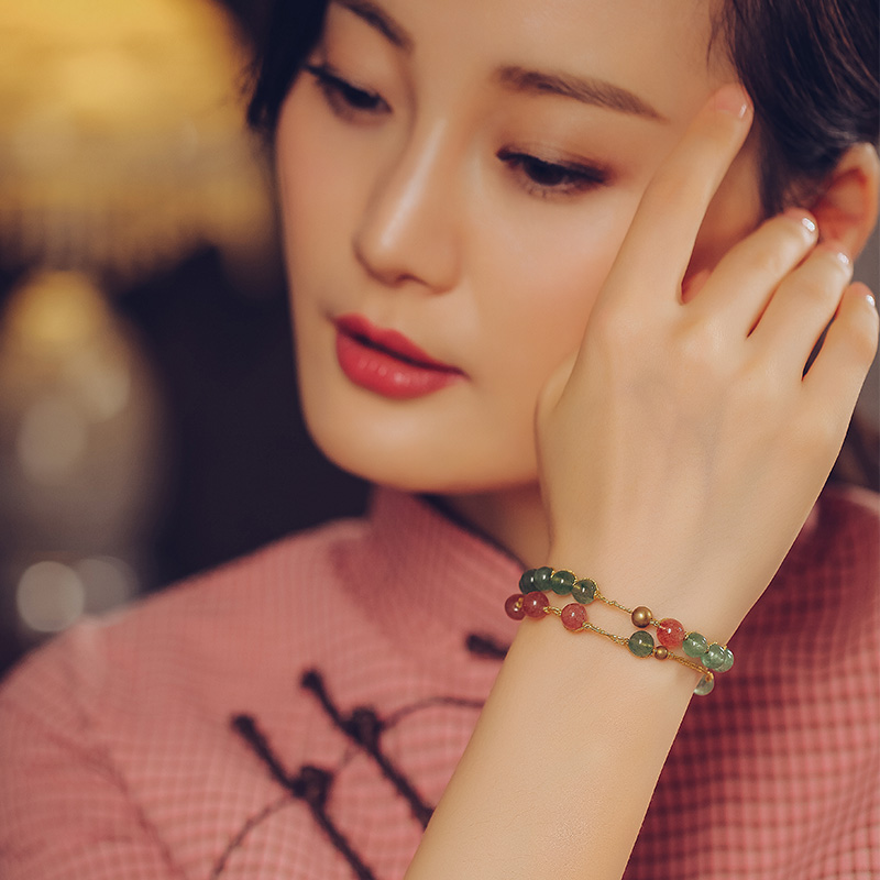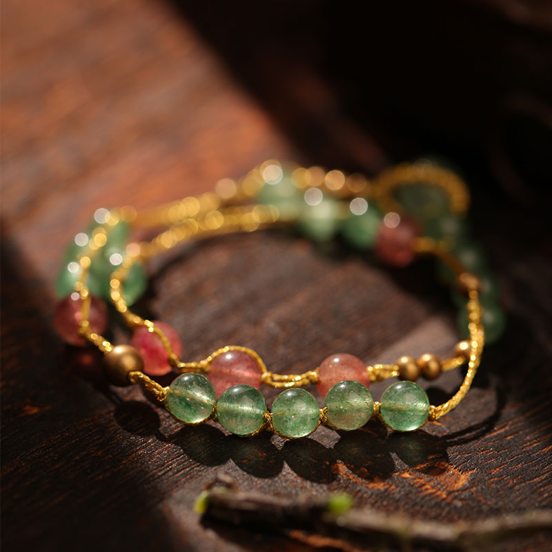 Phoenix Nirvana original powder crystal bracelet Green Strawberry crystal jewelry women's popular jewelry Fine hand string hand woven