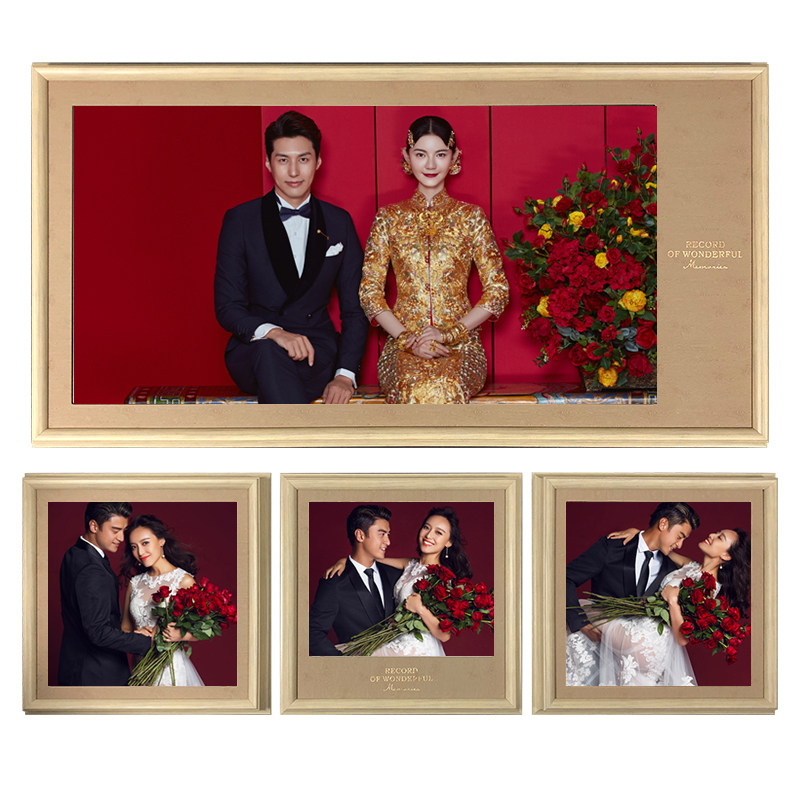 High-end Wedding Dress Photography Enlarged Photo Frame Hanging Wall Leather Engraving Tie Wedding Photo Hung Living-room Bedroom Photo Wall Composition Suit