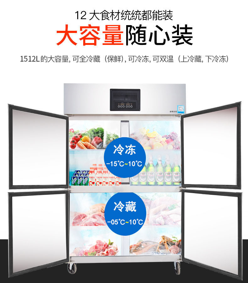 Zhongxue four-door refrigerator commercial dual-temperature refrigerated freezer fresh-keeping cabinet kitchen stainless steel four-door freezer large capacity