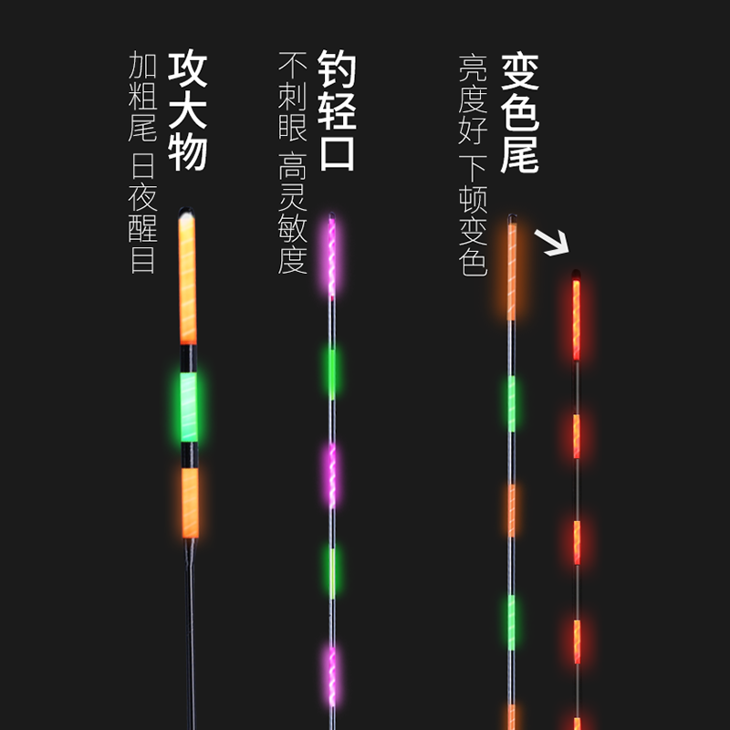 Mingfu reed electronic luminous float Bite hook color-changing night fishing drift Bold eye-catching day and night dual-use large object luminous drift