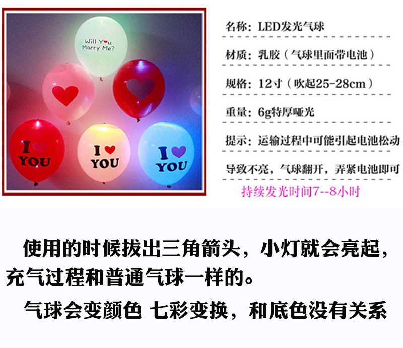 Night Light Balloon Birthday Balloon Romantic Styling LED Luminous Balloon Decoration Placement Courting Wedding Balloon 7 New Year's Eve Gift
