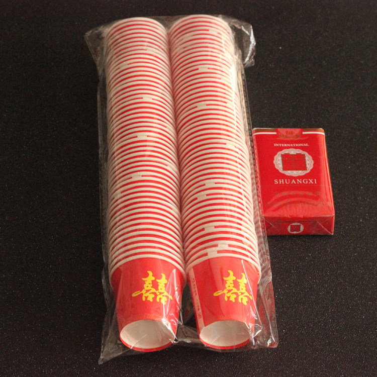 Wedding supplies disposable paper cup red plus thick anti-scalding wedding banquet tea cup large paper bowl