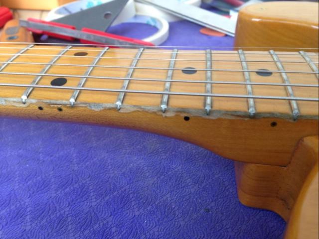 Rifen vintage 52 guitar neck repair and replacement jescar stainless steel fret spray paint adjustment display